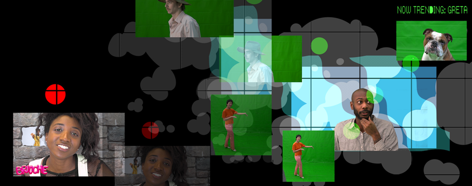 Brown organizes levels of experience around a growing dissociation from any sense of lived, embodied reality, playing on the way our culture of ever-recycled images sees personal stories captured, monetized, and re-circulated ad infinitum. As a remedy to such feelings of disconnect, the characters in this world are played by Brown’s friends who, by slipping in and out of their roles as they play out comedic and absurd storylines, highlight the on-set camaraderie between cast and director. Brown’s directing style draws upon several years of training in Clown, a performance style that emphasizes improvisation and play.