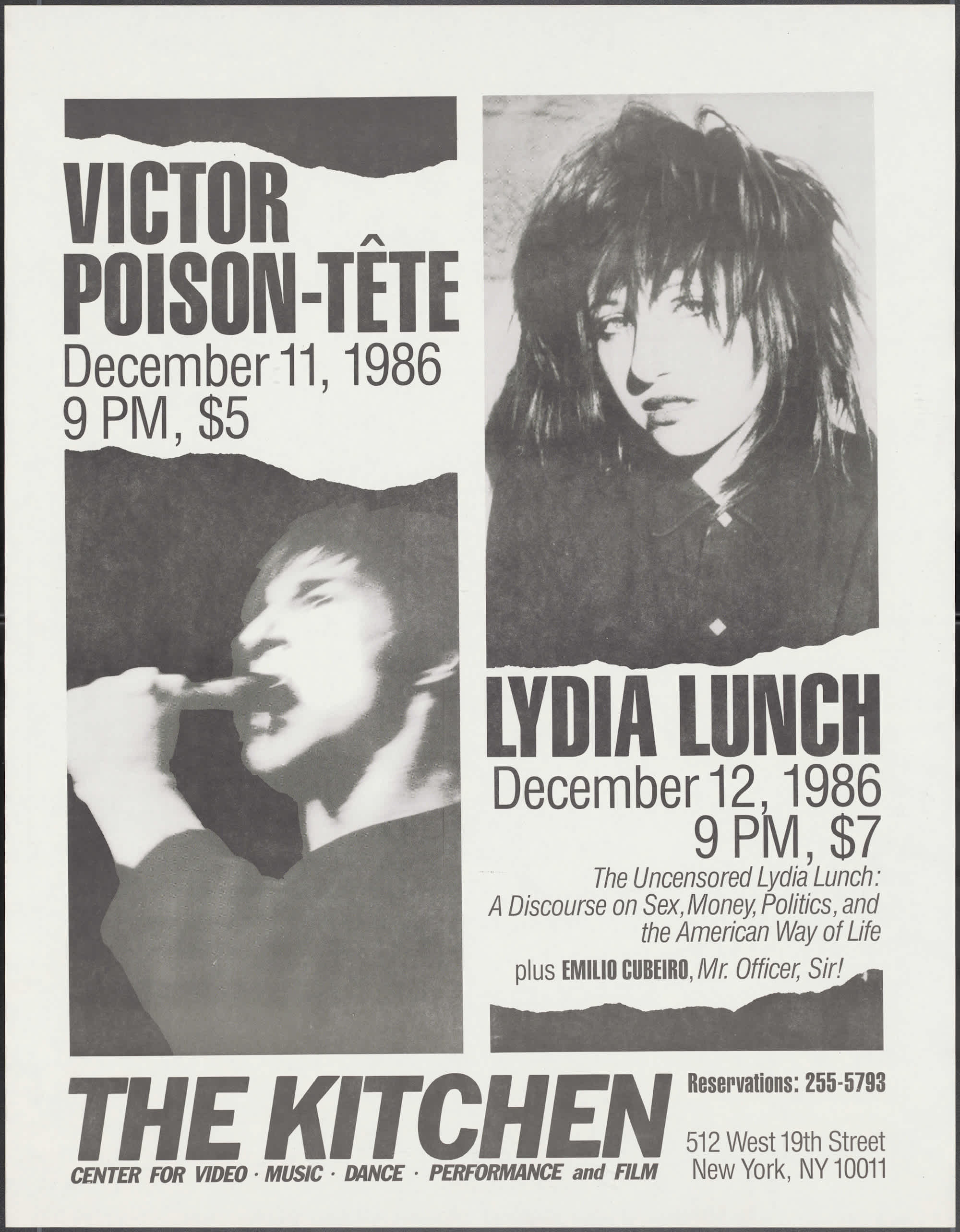 Victor Poison-Tête and Lydia Lunch. The Uncensored Lydia Lunch: A Discourse on Sex, Money, Politics, and the American Way of Life. Plus Emilio Cubeiro, "Mr. Officer, Sir!"