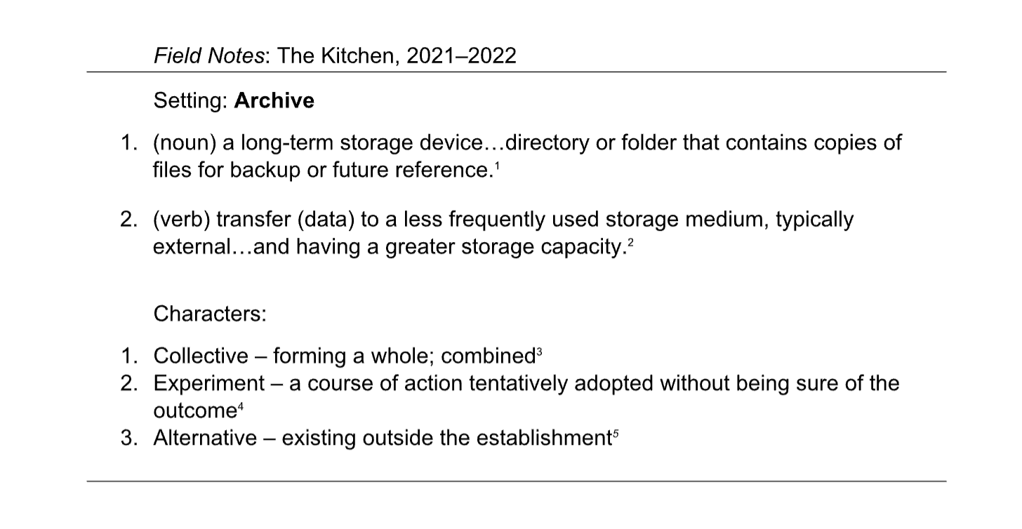 - Robert Stearns, “The Kitchen,” Electronic Arts Intermix, May 2001, https://www.eai.org/user_files/supporting_documents/Bob_Stearns_Kitchen.pdf