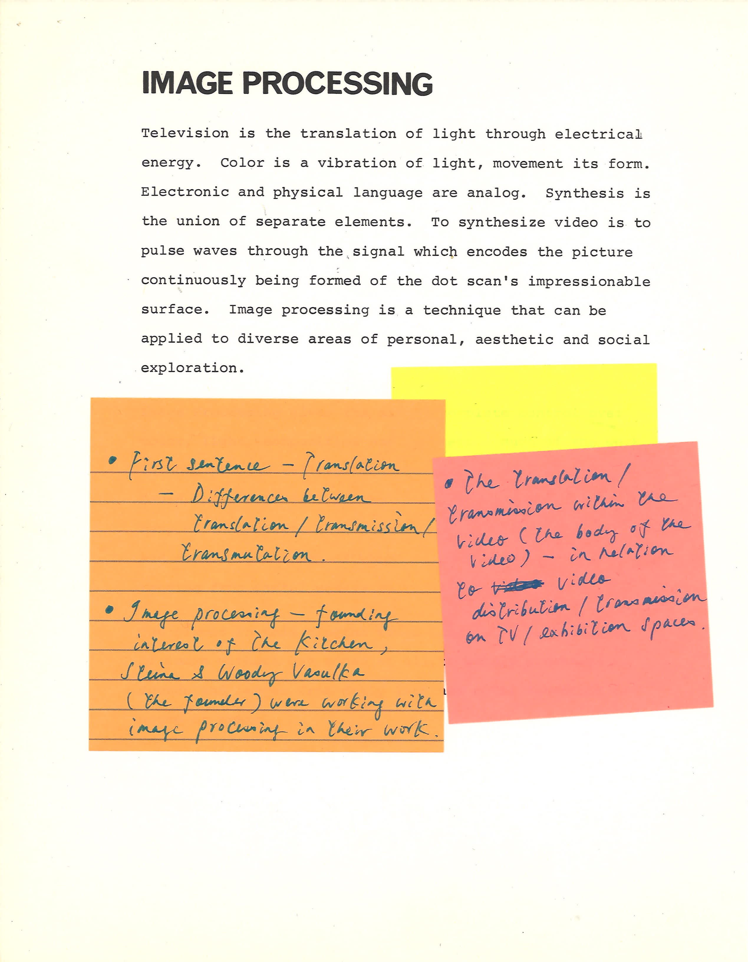 Excerpt from letter from artist Bill Viola to Tom Bowes, Video Director, The Kitchen, October 12, 1981. Emphasis and notes added by Wong Kit Yi, 2023.