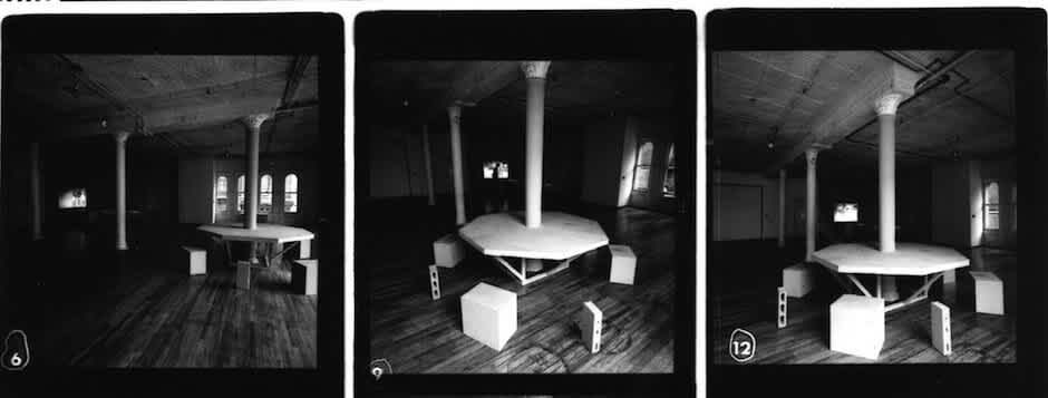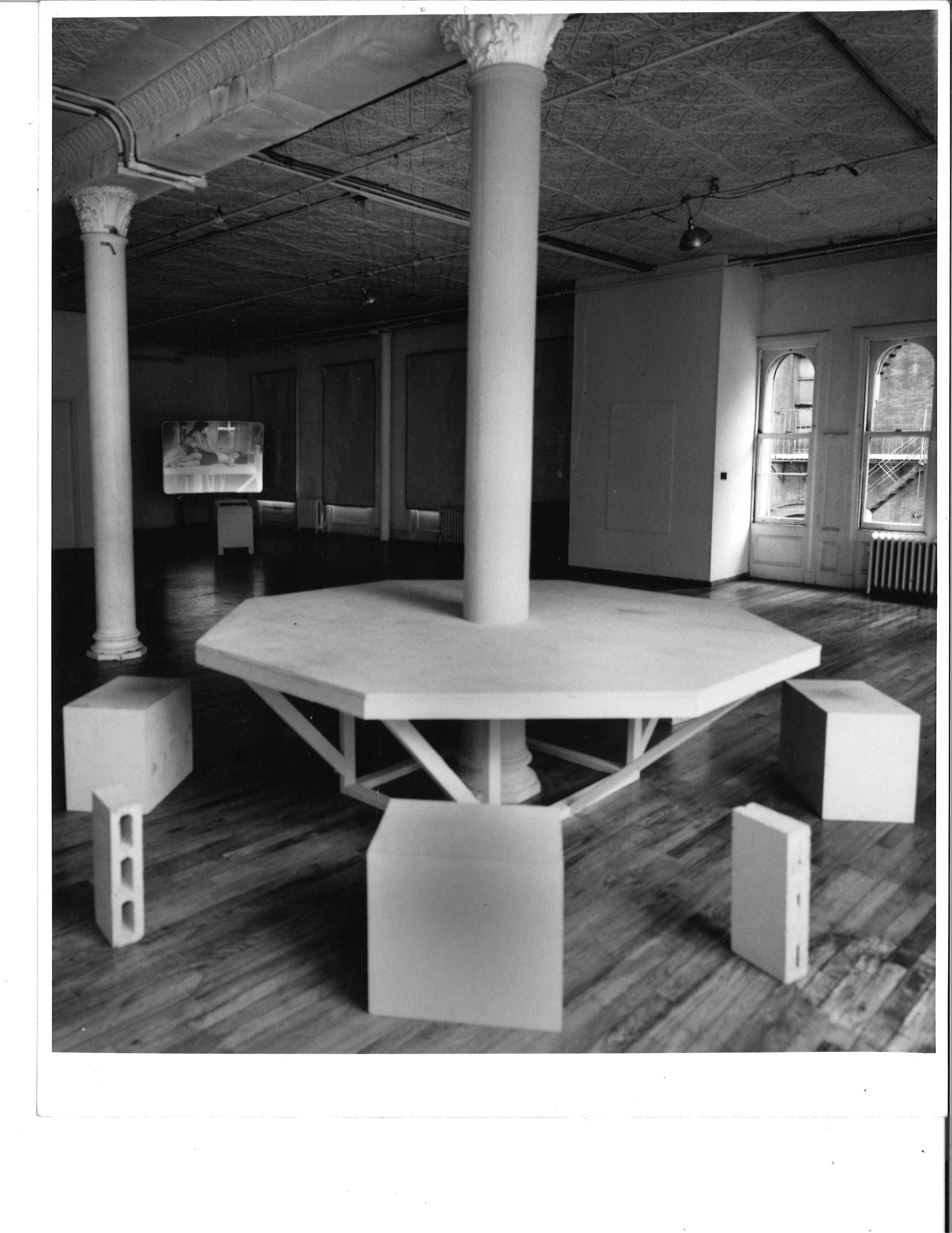 LW: They knew that they were standing for certain things. They made it obvious in the tape what they stood for. I brought together people who had developed personalities and developed roles within society, and asked them to see what it was like trying to occupy the space of a table [that was installed in The Kitchen’s space]. The table presented itself as a space to be occupied.
