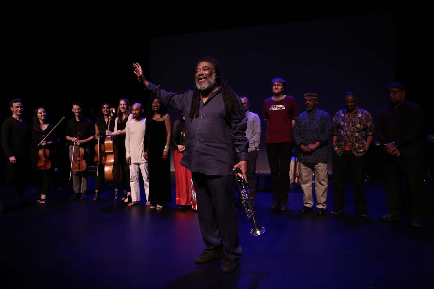 Wadada Leo Smith, trumpeter, multi-instrumentalist, composer, and improviser, is one of the most acclaimed creative artists of his time, both for his music and his writings. For the last five decades, Smith has been a member of the historical and legendary Association for the Advancement of Creative Musicians (AACM). He has been on the faculty of the following institutions: The University of New Haven (1975–1976), The Creative Music Studio in Woodstock, NY (1975–1978), and Bard College (1987–1993). From 1994–2013 he served as faculty at The Herb Alpert School of Music at California Institute of the Arts where he was the director of the African-American Improvisational Music program. Smith’s awards and commissions include DownBeat Magazine’s 65th Annual Critics Poll: Artist, Trumpet, and Album of the Year (America’s National Parks). A finalist for the 2013 Pulitzer Prize in Music, he received the 2016 Doris Duke Artist Award and earned an honorary doctorate from CalArts, where he was also celebrated as Faculty Emeritus. Smith’s own music theory and notational system for improvisation in an ensemble context, which he calls “ankhrasmation,” has been significant in his development as an artist and educator. Smith published his music philosophy in the early 1970s in notes (8 pieces), source a new world music: creative music (Kiom Press, 1973).